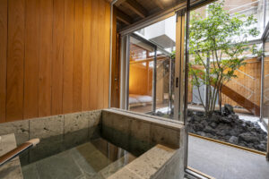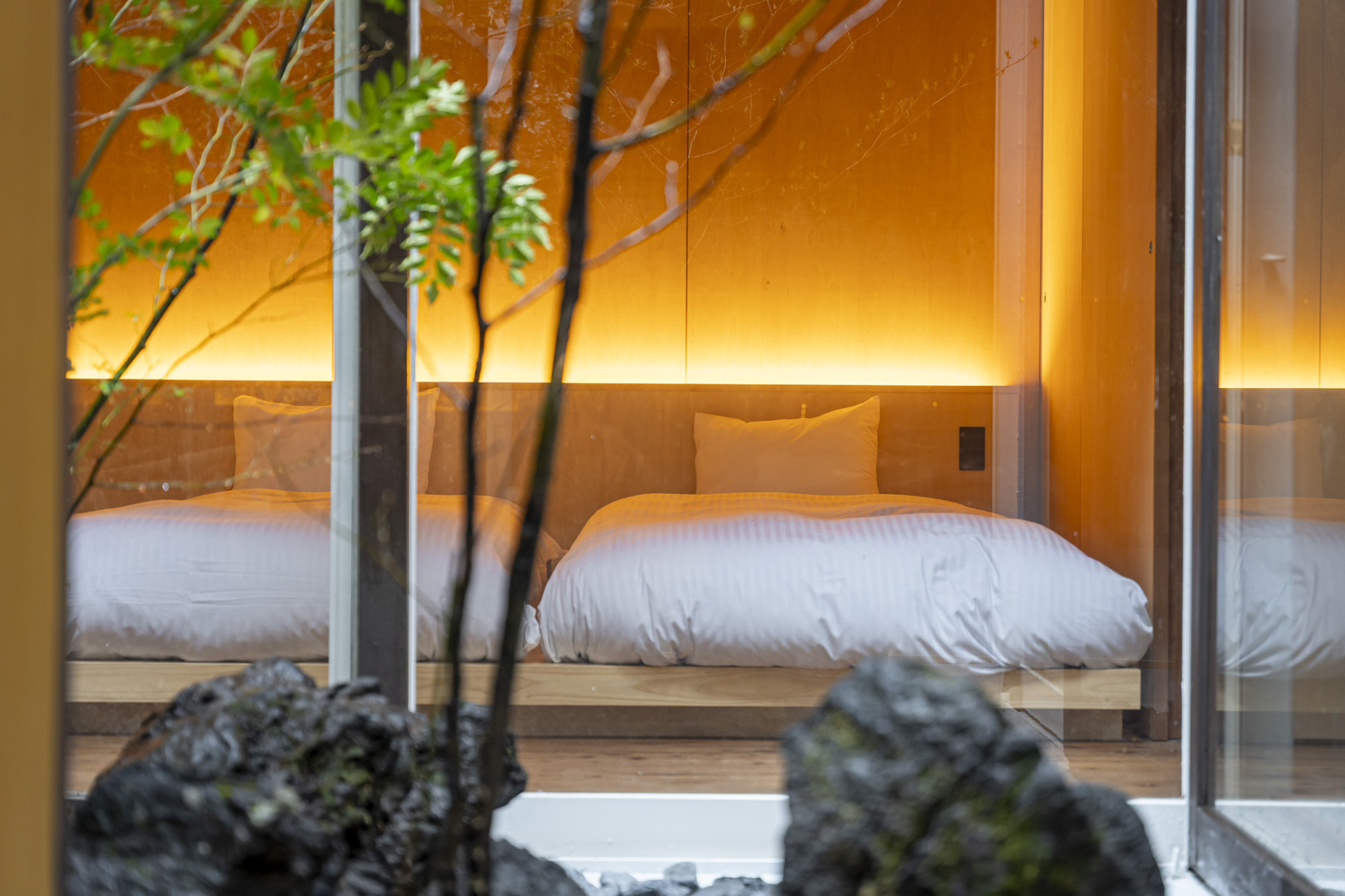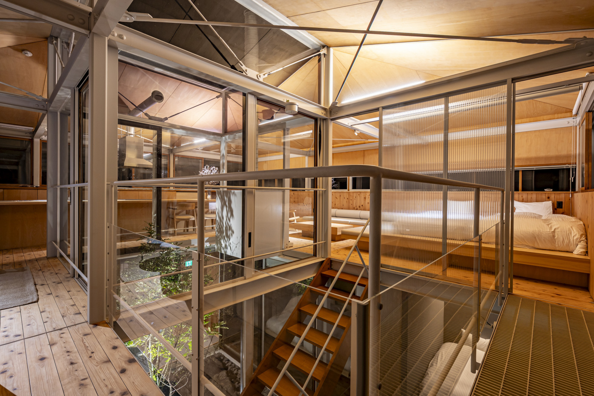 The inn was designed by renowned architect Tsune Kitayama. Each room is arranged around a glass-walled courtyard located in the center of the house, providing an extraordinary living experience that is completely different from that of a typical home. The house is designed in such a way that even if children move around, they can see what is going on.