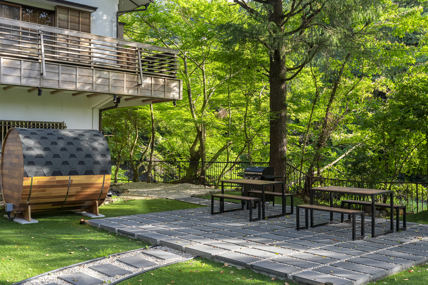 The spa is equipped with sauna and BBQ facilities as well as hot spring baths. Surrounded by deep greenery, you will experience the sensation of relaxing from the inside out as you take a bath in the open air.