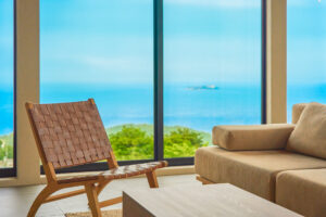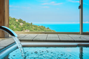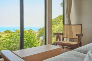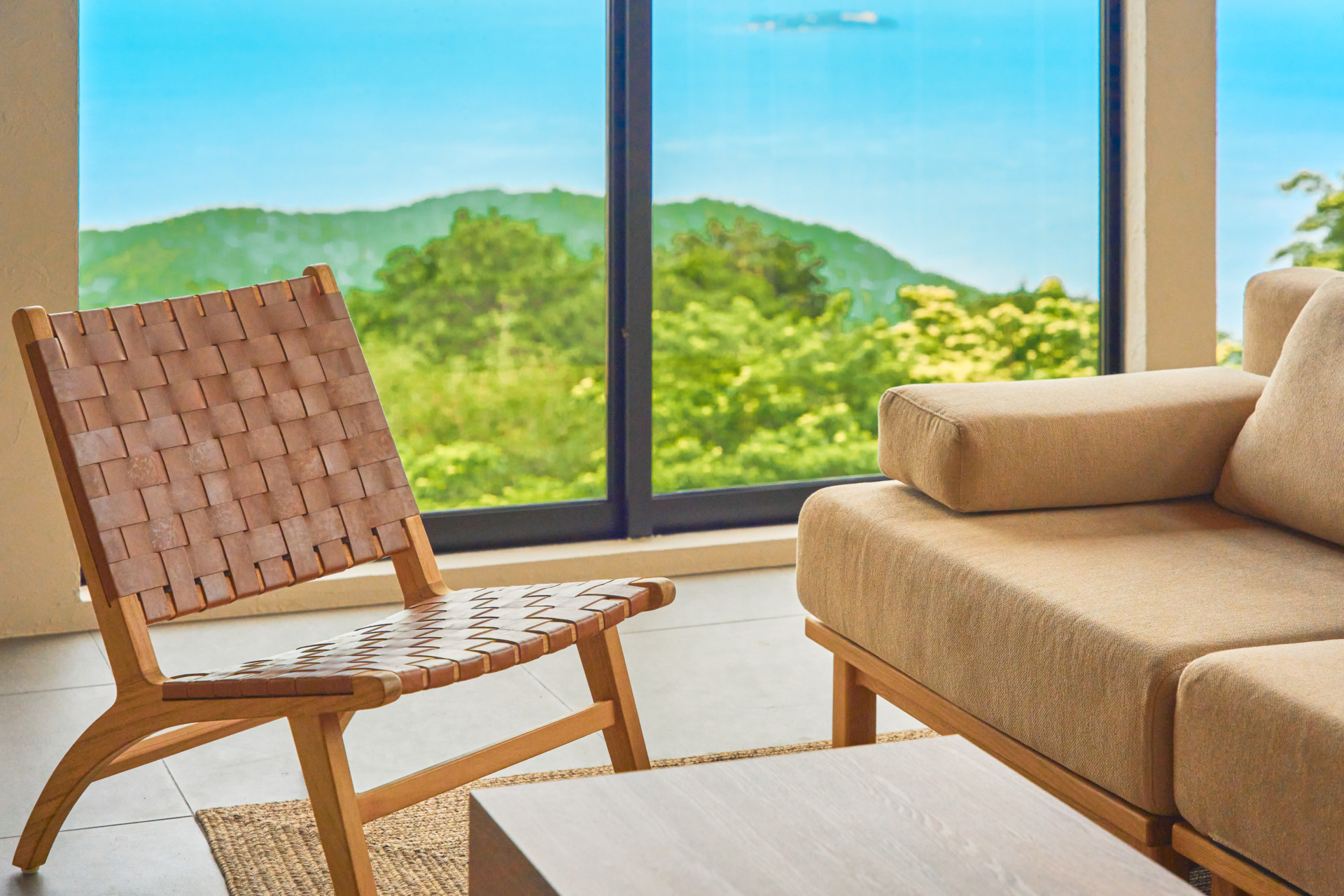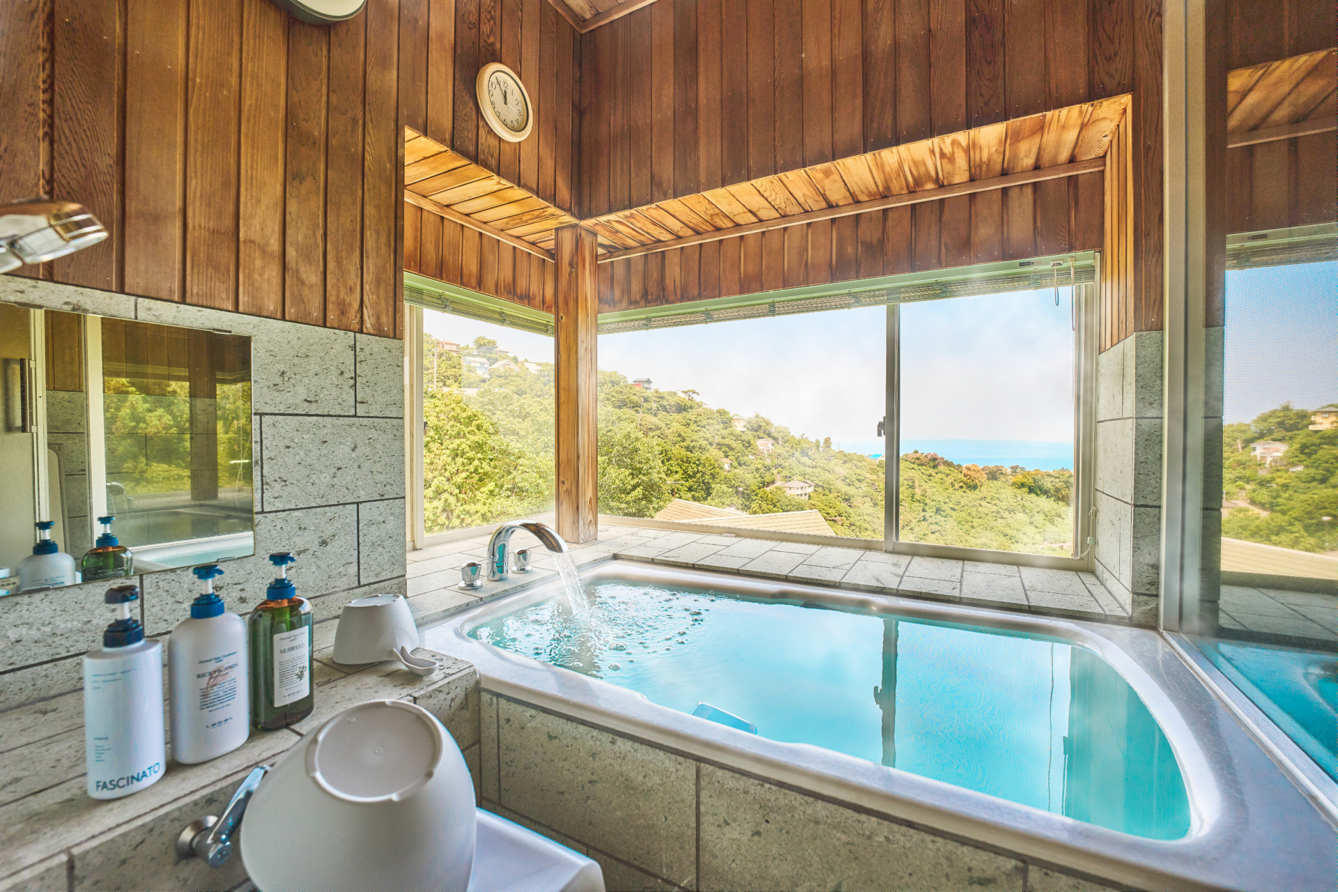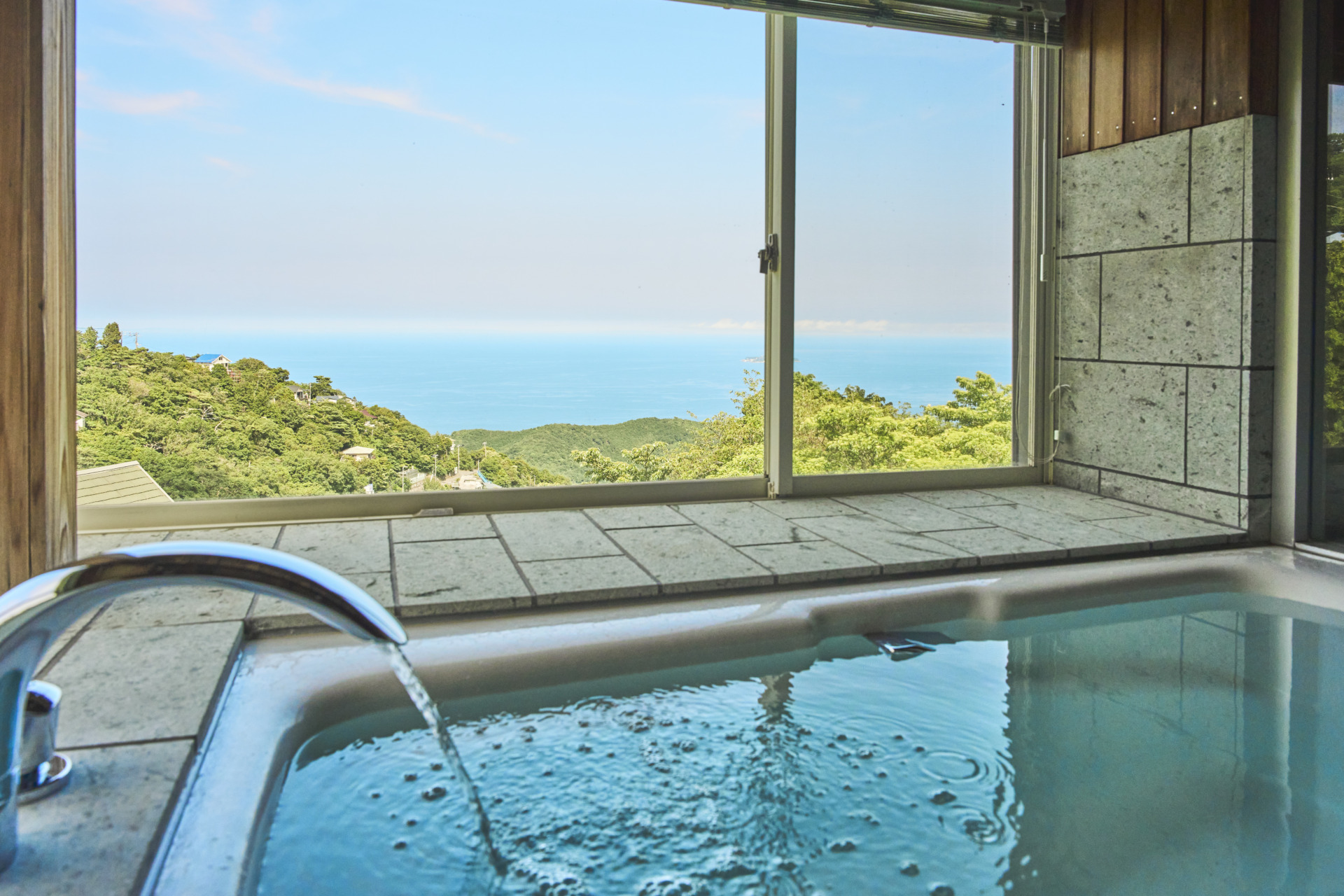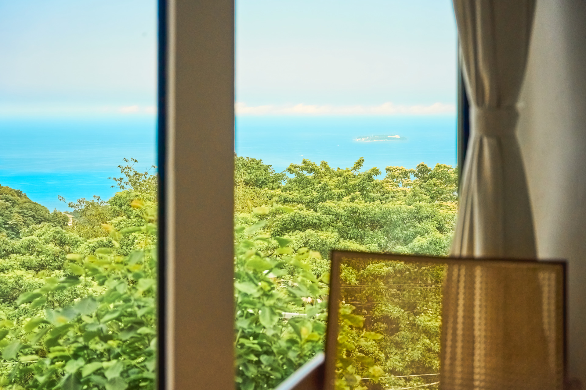 高台に建つ宿だからこそ楽しめる圧巻のオーシャンビューが特徴。眼下に広がる景色に思わず声を上げてしまうような、贅沢なプライベート空間が広がります。