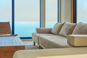 浴室からも海を眺められるので、優雅にのんびりと心落ち着ける時間がとれるはず。