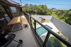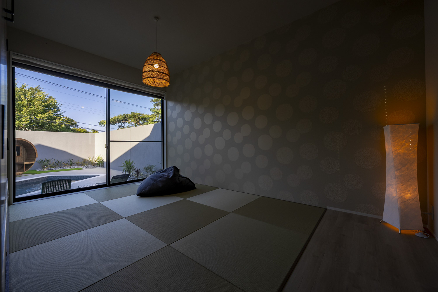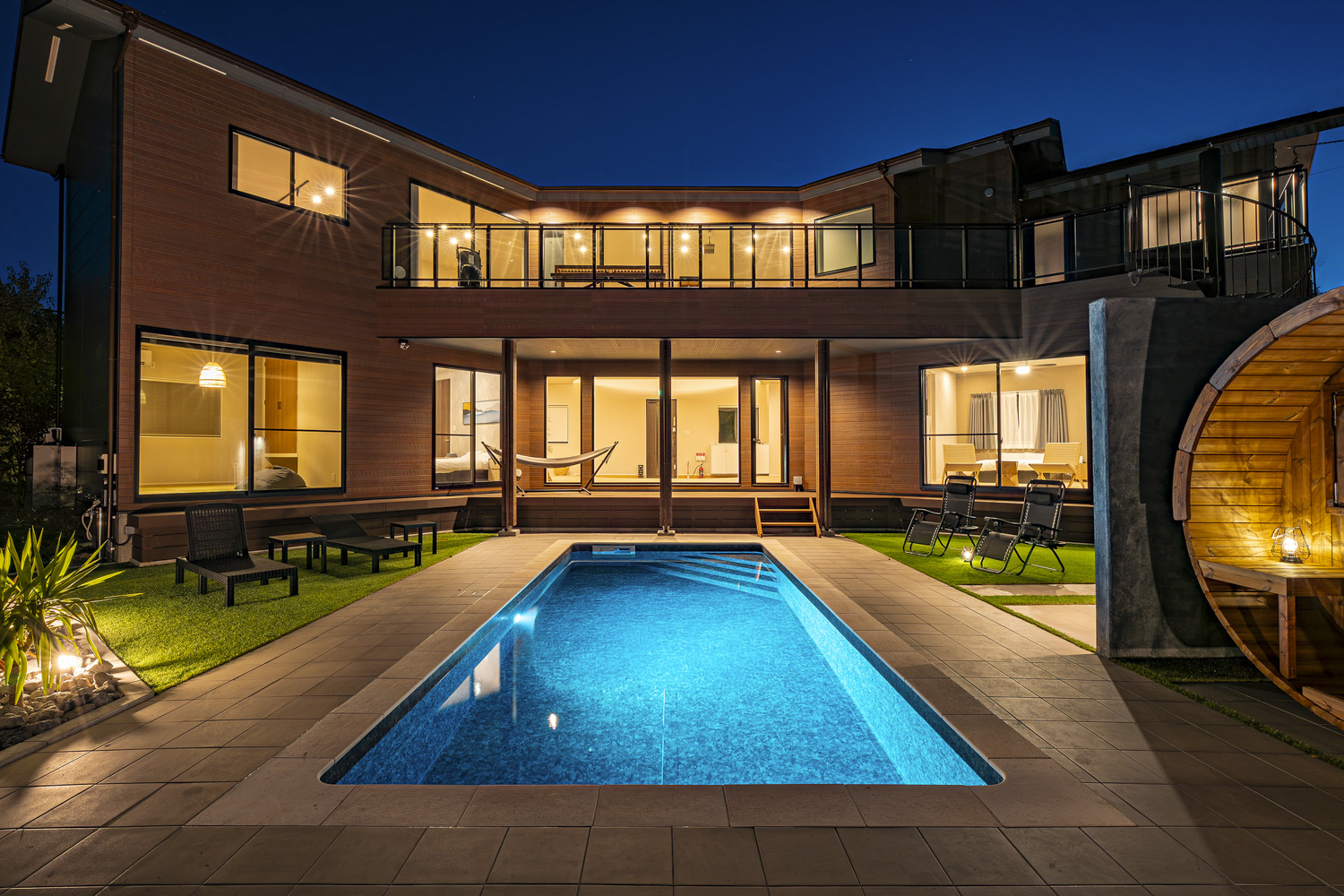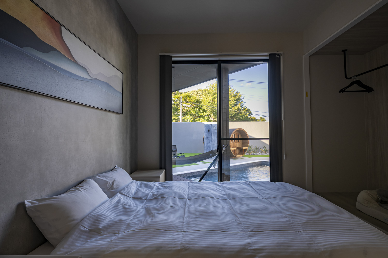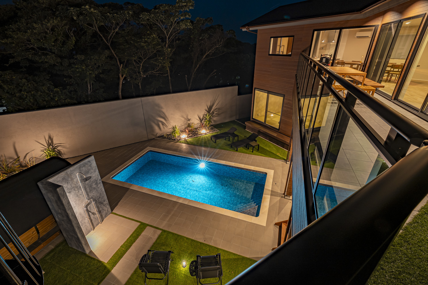伊東市富戸に佇む一棟貸切の宿「SANA 伊豆大室山-Pool Villa-」は、プライベートプール付きの贅沢な貸別荘です。